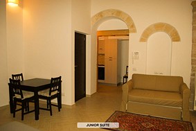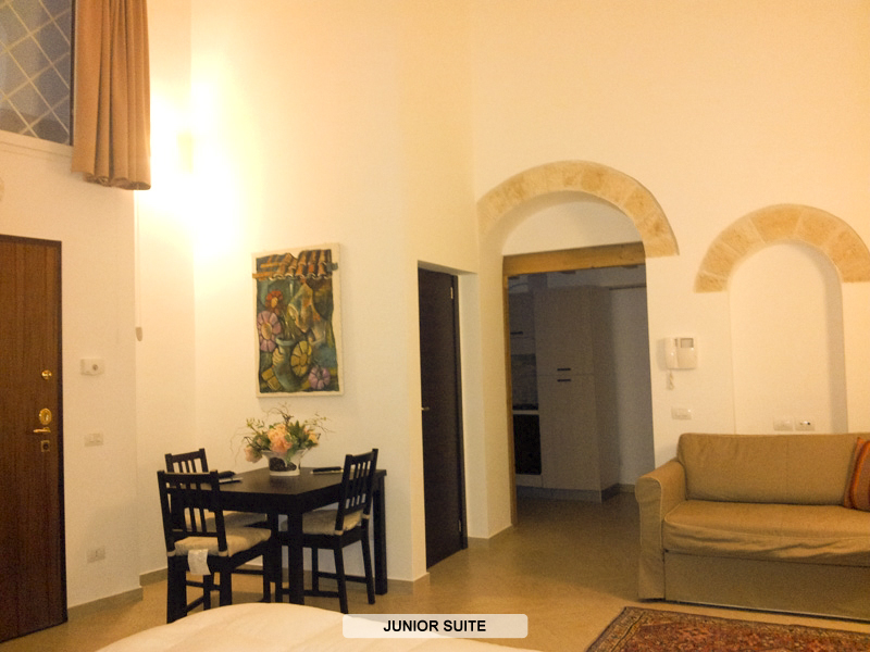 Mini suite composta da un letto matrimoniale con divano trasformabile a letto, cucina attrezzata e tavolo da pranzo