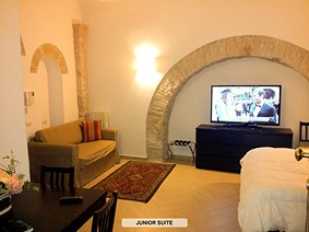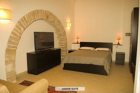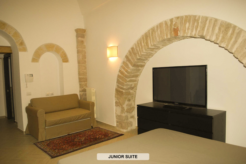 Mini suite composta da un letto matrimoniale con divano trasformabile a letto, cucina attrezzata e tavolo da pranzo